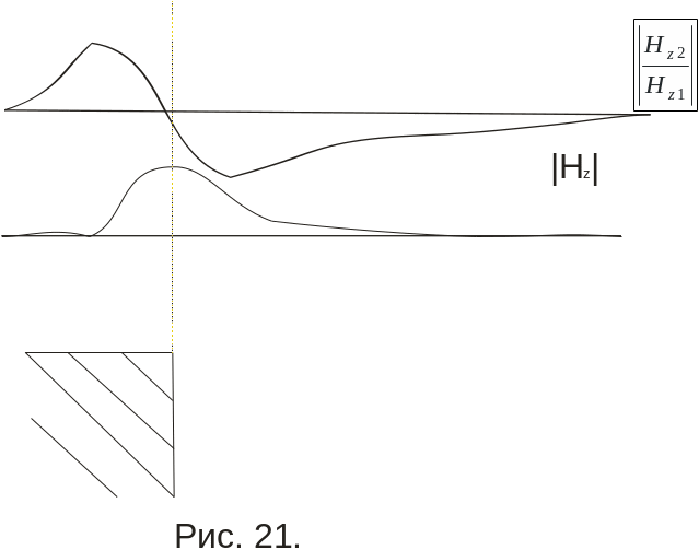 Кривые |Нz| характеризуются переходом с минимума на максимум, а кривые имеют противоположный знак по сравнению с предыдущим случаем (рис. 19).