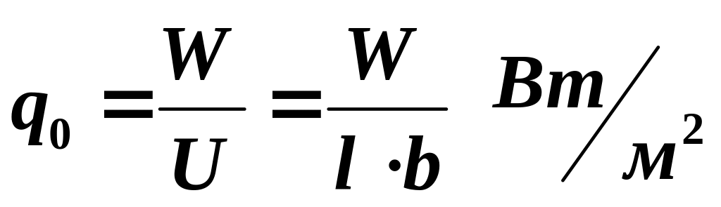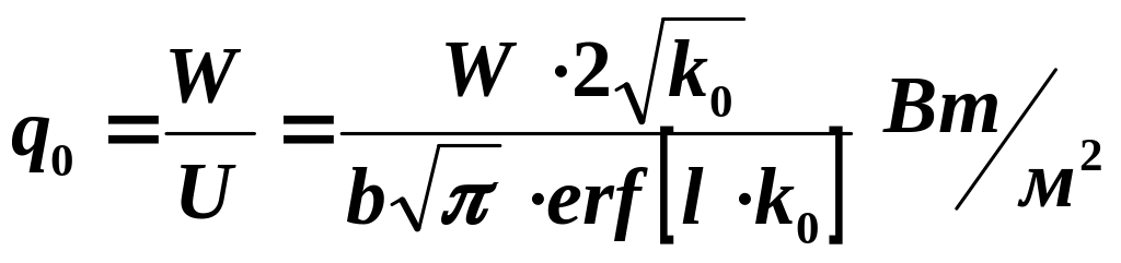 При решении теплофизических задач обычно известно количество выделившейся теплоты Q за время действия источника τ, т.е. известна тепловая мощность источника W. Требуется определить q0 – максимальную плотность тепловыделения для разных значений функции U, т.е. разных законов распределения.