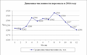 На конец 2016 года среднесписочная численность составила 1281 чел., что на 3 человека меньше, чем в начале года.