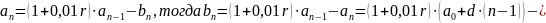 — 1-го числа каждого месяца долг возрастёт на r% по сравнению с концом предыдущего месяца;