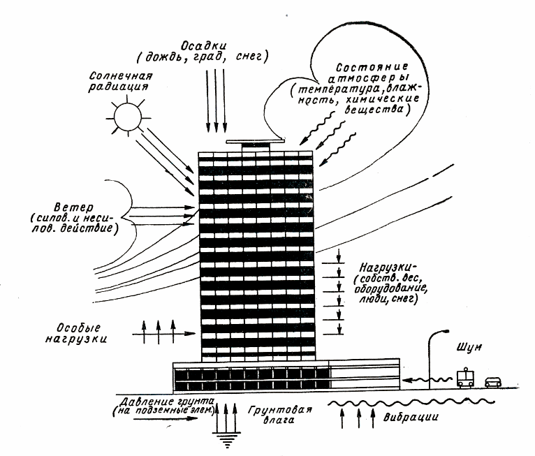 Рис 1.1 - Внешние воздействия на здания