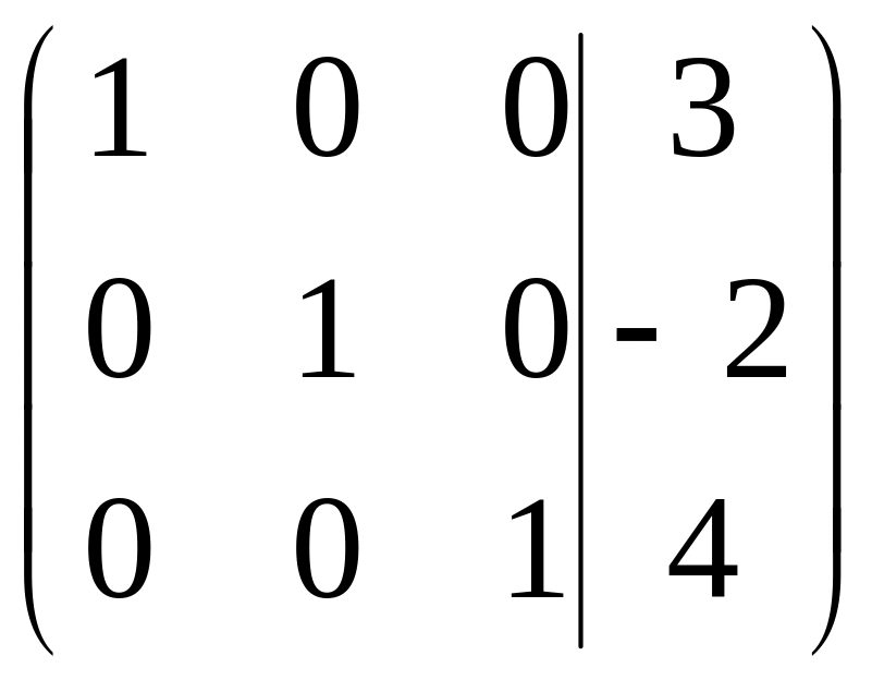Таким образом, смысл метода Гаусса состоит в том, что сначала 1-й столбец исходной матрицы приводим к виду , затем 2-й - к виду и, наконец, 3-й – к виду . При этом происходит преобразование столбца свободных членов.