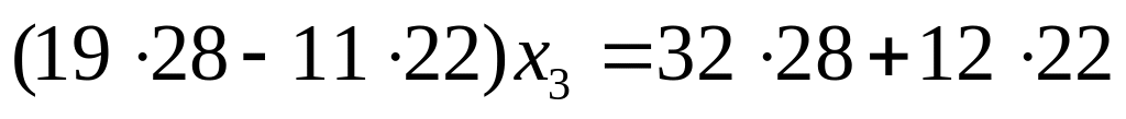 Умножим первое уравнение на 28, второе на 22 и сложим. Слагаемые с х2 сократятся и мы получим уравнение для х3