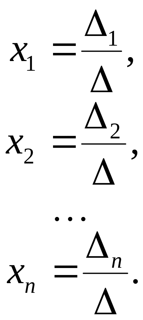 Если определитель системы 0, то, согласно формулам Крамера, решение системы (1) можно представить в виде
