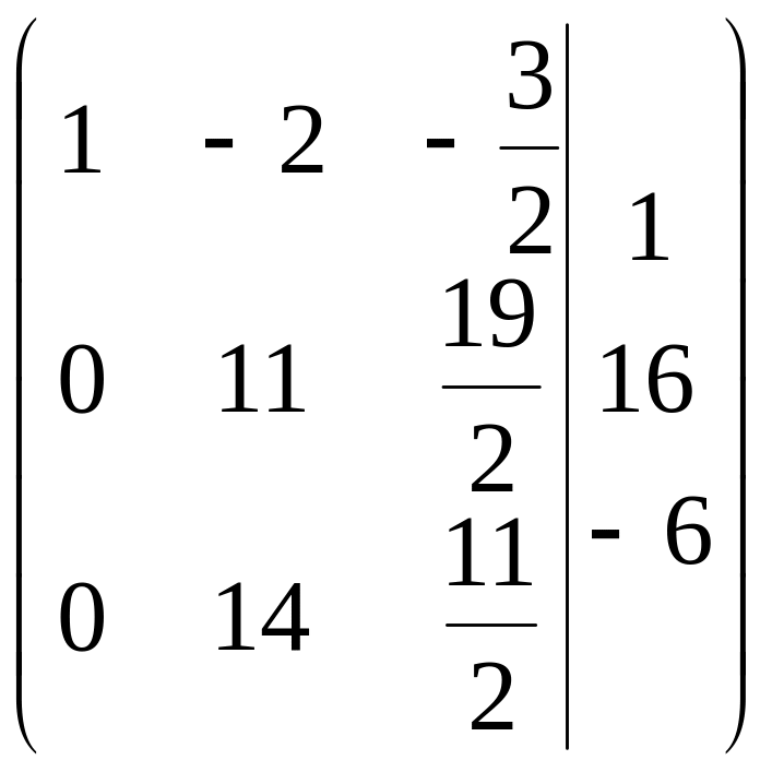 Вместо 3-й строки записываем ее комбинацию со 2-й: 2-ю строку умножаем на (-14) и складываем ее с 3-й строкой, тогда