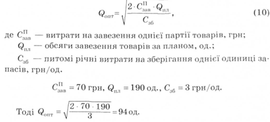 Визначаємо оптимальний розмір партії завезення за критерієм мінімуму загальних витрат