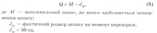 Максимальний розмір запасу ( М ) визначаємо за формулою