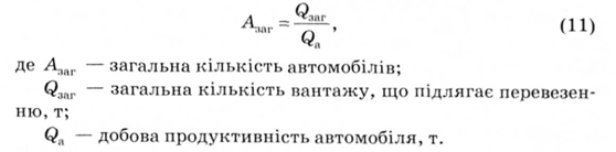 Визначаємо потребу в транспортних засобах (Азаг) за формулою