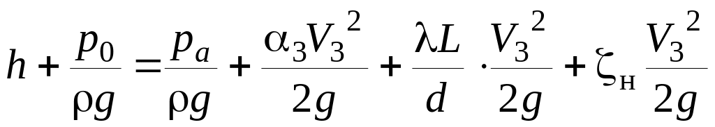 Запишем уравнение Бернулли для сечений 1−1 и 3−3. В отличие от истечения через отверстие, здесь, кроме местных потерь, имеются путевые.
