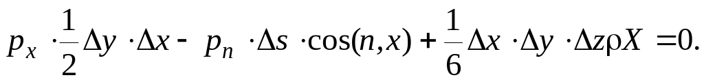Докажем последнее свойство. Выделим в жидкости элементарный объём в виде тетраэдра с рёбрами ∆x, ∆y, ∆z (рис. 2.2).