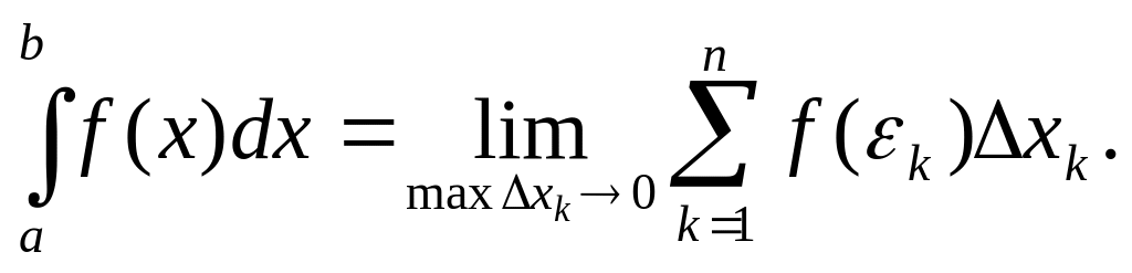 Определенным интегралом от функции , непрерывной на отрезке называется предел интегральной суммы при условии, что длина наибольшего из элементарных отрезков стремится к нулю: