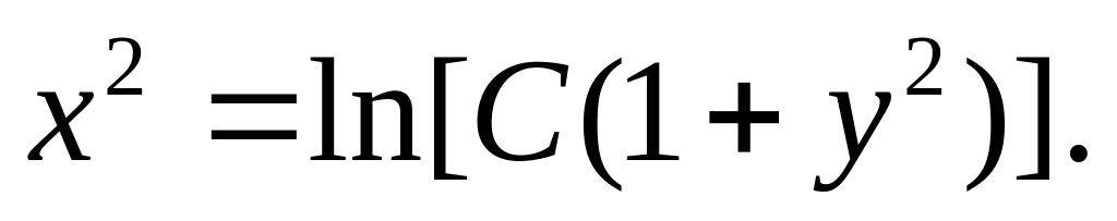 Так как произвольная постоянная С может принимать любые числовые значения, то для удобства дальнейших преобразований вместо С мы написали (1/2)lnC. Потенцируя последнее равенство, получим: