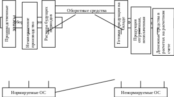 Кругооборот оборотных средств считается завершенным только в тот момент, когда после реализации готовой продукции оборотные средства возвращены предприятию в денежной форме, т.е. поступили на расчетный счет предприятия.