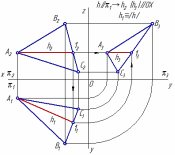 - •1.5.1 Метод замены плоскостей проекций (замена одной и двух плоскостей проекций, четыре основные задачи преобразования чертежа)