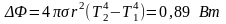 с единицы поверхности за единицу времени); σ – постоянная Стефана–Больцмана. Поток Ф, излучаемый телом, равен энергии, излучаемой со всей поверхности тела за единицу времени во всем интервале длин волн. Из этого следует Ф = R*S. Принимая зачерненный шарик за абсолютно черное тело и учитывая (1), запишем поток для температуры Т1 = t1 + 273 = 293 K и T2 = T1 + ΔT = 320 K, где ΔТ = Δt = 27 К: