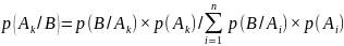 Теорема Байеса определяет условную вероятность p(Ak/B) появления некоторого события Ak при условии того, что некоторое событие B уже наступило; здесь k может принимать любое значение от 1 до n, причём n является числом возможных событий, наступающих в данном опыте. Математическое выражение: