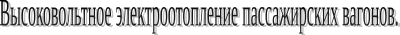 Назначение В настоящее время парк пассажирских вагонов состоит из вагонов с комбинированным отоплением. На вагонах сохраняется водяная система отопления с водогрейным котлом. В тоже время внутри котла установлены высоковольтные нагревательные элементы. Для отопления этих вагонов от локомотива, а также стационарной высоковольтной колонки, принята единая однопроводная система с напряжением 3000 Вольт постоянного или однофазного переменного тока промышленной частоты 50 Гц. Разница заключается в том, какой применяется ток в контактной сети на данном участке следования поезда. При электрификации железных дорог России и стран ближнего зарубежья используется два вида напряжения: 27500 Вольт однофазного переменного тока, или 3000 Вольт постоянного тока. При переменном токе напряжение перед подачей в подвагонную высоковольтную магистраль вагонов необходимо преобразовать из 27500 Вольт в напряжение 3000 Вольт.