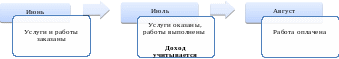 Пример 3. Компания «Береке» занимается производством продуктов питания. В июне компанией был получен заказ на эту продукцию от ресторана «Керемет». Доставка продукции ресторану была осуществлена в июле. Ресторан оплатил за продукцию компании в августе и реализовал эту продукцию своим клиентам в сентябре. Компания «Береке» учтет доход за реализованную продукцию в июле (Иллюстрация 3.7).