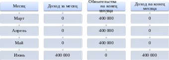 Пример 3. В марте Компания «Жарнама» получила аванс в сумме 400 000 тенге за изготовление рекламных брошюр. Брошюры были доставлены клиенту в июне (Иллюстрация 3.8).