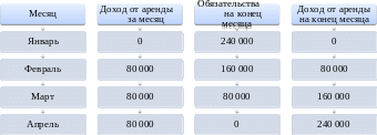 Пример 5. В январе компании «Айсулу» заплатили 240 000 тенге за аренду офиса в феврале, марте, апреле. Такой вид доходов называется доходом от аренды. Учет полученного дохода в этом случае ведется с разбивкой по месяцам: