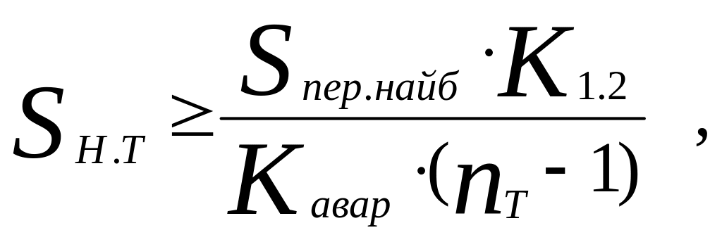 Расчетную мощность рабочих трансформаторов собственных потребностей для энергоблоков рассчитывают за условием :