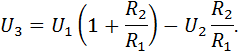 Т.к. напряжения U3 и U4 являются входными для дифференциального усилителя А3, то с учетом делителя R6 и R7 получаем