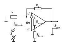 приводящее к тому, что между входами возникает напряжение Δе≠0, вызывающее в свою очередь возникновение напряжения на выходе усилителя.