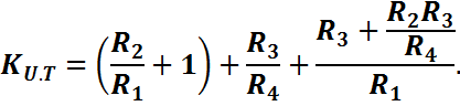 Регулировка коэффициента усиления возможна только изменением двух сопротивлений (например R2 и R4).