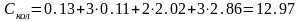 В таблице 5.1 приводятся результаты расчета колебательной составляющей изобарной теплоемкости метана при Т=500К.