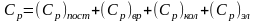 Статистическая термодинамика позволяет рассчитать теплоемкость идеального газа при различных температурах. Изобарную молярную теплоемкость можно представить в виде суммы составляющих