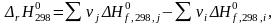 По второму следствию из закона Гесса тепловой эффект можно рассчитать, используя теплоты сгорания ΔcH, как разность сумм теплот сгорания исходных веществ и продуктов реакции (с учетом стехиометрических коэффициентов):
