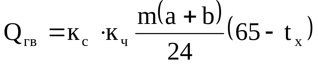 а – норма расхода горячей воды (+65оС) для жилых зданий = 80-100 на 1 человека в сутки. а=90