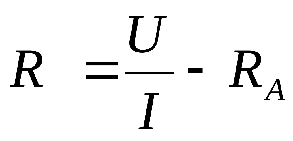 Егер амперметр кедергісі RA белгілі болса, онда белгісіз R кедергіні былай есептеуге болады: