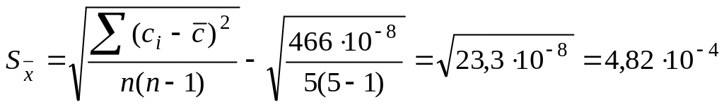 3 Рассчитывают квадрат отклонения от среднего, (моль/дм3)2: