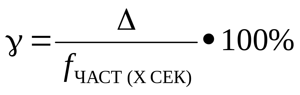 1.4 Рассчитать абсолютную и относительную погрешности результатов измерения полученных при разных временах измерения. За образцовый результат принимается результат измерения частоты, полученный при 10 секундах. Тогда выражение для расчета абсолютной и относительной погрешности по каждому времени измерения