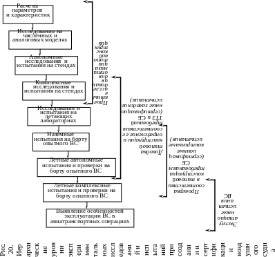 Необходимо отметить, что процесс создания воздушного судна постоянно сопровождается различными видами испытаний и проверок, подтверждающих правильность принятия технических решений или их отработка до введения в проект (рис. 20).