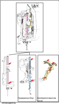 игольница, прижимной бар и нитепритягиватель