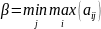 Игрок В придерживается минимаксной стратегии. Он своими оптимальными стратегиями стремится уменьшить выигрыш игрока А. Поэтому при каждой j-ой стратегии он определяет величину своего мах проигрыша, а затем выбирает минимальный из них. Математически минимаксную стратегию можно записать в виде
