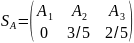 Точка N является пересечением пары чистых стратегий A2 и A3. Следовательно, вероятности использования других стратегий равны нулю: p1= 0. На графике p2* и p3* равны долям, на которые проекция точки N на ось ординат Oν делит отрезок ( a31 a21). Можно найти точные значения p2* и p3* из решения системы двух линейных уравнений соответствующих стратегиям A2 и A3.
