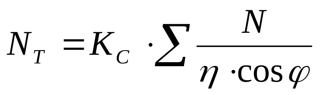 Силовые трансформаторы подбираются по наибольшей потребляемой мощности низковольтных электродвигателей и мощности осветительной нагрузки по формуле