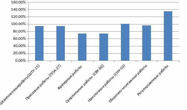 Расчетное количество оборудования (Ор.) округляется до целого числа и называется принятым количеством (Опр.). На основании этого расчета можно определить коэффициент загрузки оборудования по каждой группе (Кз):