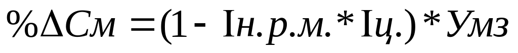 Умз - питома вага матеріальних витрат у собівартості одиниці продукції, %.