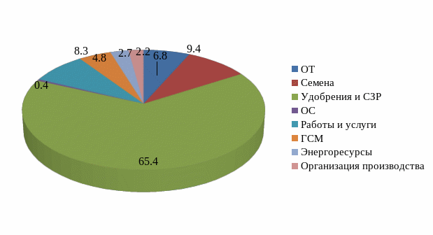 Данные рисунка 3.1 наглядно показывают преобладание затрат на удобрения и средства защиты в структуре затрат на производство рапса.