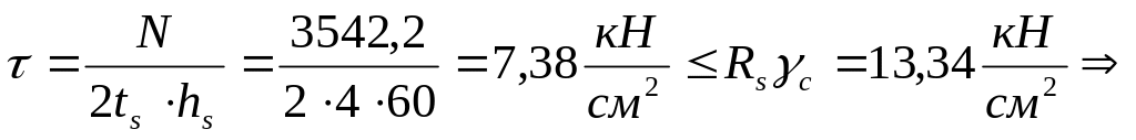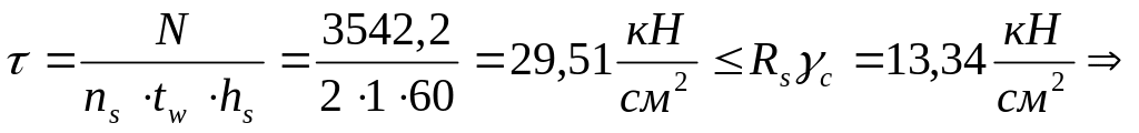 Проверяем стенку колонны на срез: