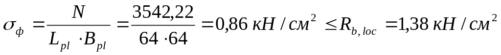 Фактическая площадь опорной плиты: