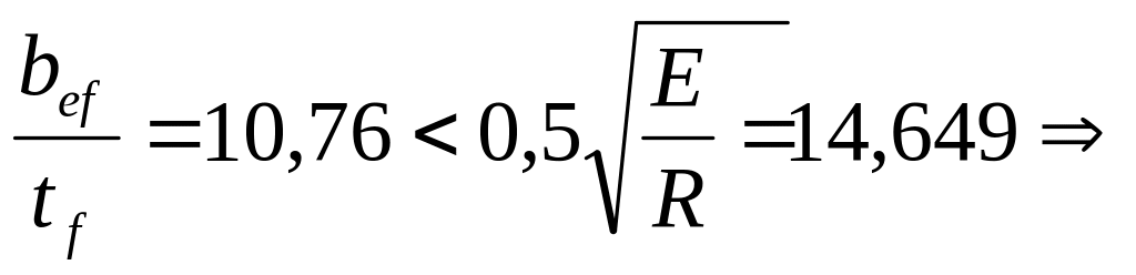 Проверим отношение ширины свеса сжатого пояса к его толщине из соображений местной устойчивости ( по п.7.24 СНиП II-23-81* ):