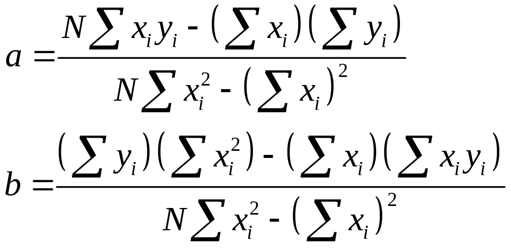 Для определения коэффициентов a и b в эмпирических формулах, можно использовать метод наименьших квадратов: