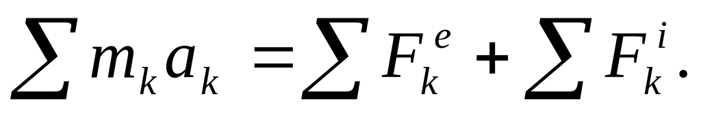 Выведем формулу, выражающую данную теорему. Запишем уравнения движения точек механической системы в векторной форме (см. (55))