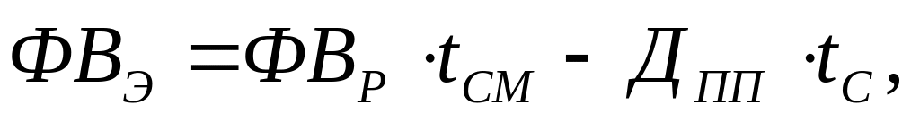 Реальный фонд времени рассчитывается как разность между номинальным фондом и общим числом неявок на работу, среди которых отпуска, болезни, прогулы, целодневные простои, забастовки и др. (формула 14).