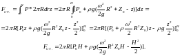 Для определения силы давления жидкости на дно или крышку выражаем силу, действующую на элементарную кольцевую площадку dS = 2πrdr радиусом r и шириной dr. Давление в любой точке ось r выбрана по верхней крышке: